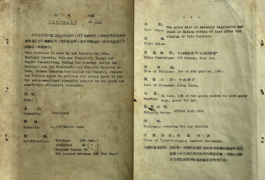 中国粮油食品进出口公司对古巴大豆等产品出口合同。